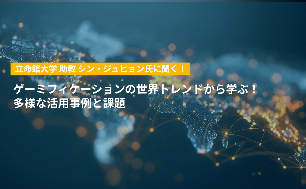 「世界のゲーミフィケーションの市場は2015年から拡大して、コロナ禍でさらに勢いをつけた」と語るのは、立命館大学でゲーミフィケーション(シリアスゲーム)の研究を行うシン・ジュヒョン助教。シン先生によれば、海外のゲーミフィケーション市場においては、日本ではまだ見られない多様な活用事例が見られるといいます。世界のゲーミフィケーション市場の状況と、注目の活用事例、そして今後の展望について、シン先生に詳しく伺いました。