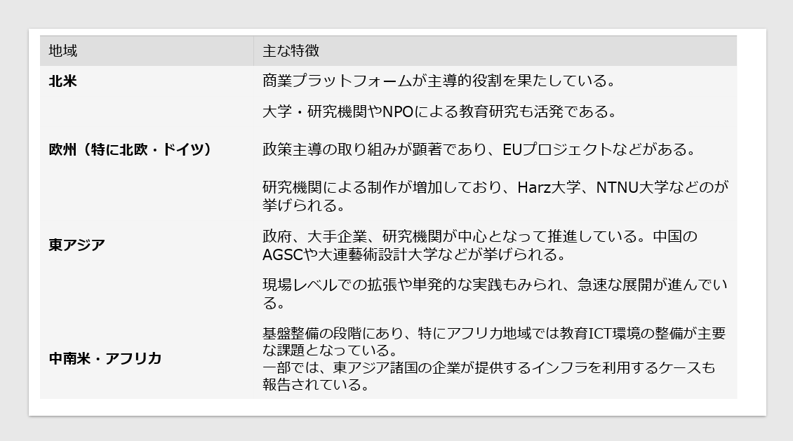 その他、中南米も他国と比べて活用の数はまだ少ないものの、特にブラジルで教育分野におけるゲーミフィケーションの取り組みが増えていて、関心が高まっているといいます。