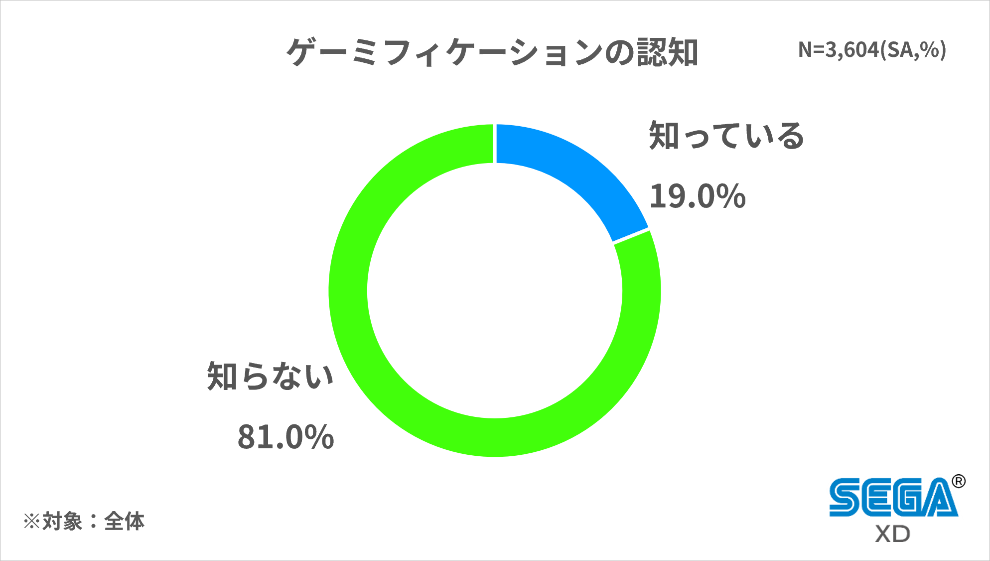 1.ゲーミフィケーションを5人中1人程度(19.0%)が認知と、前年度比で3.0pt増。