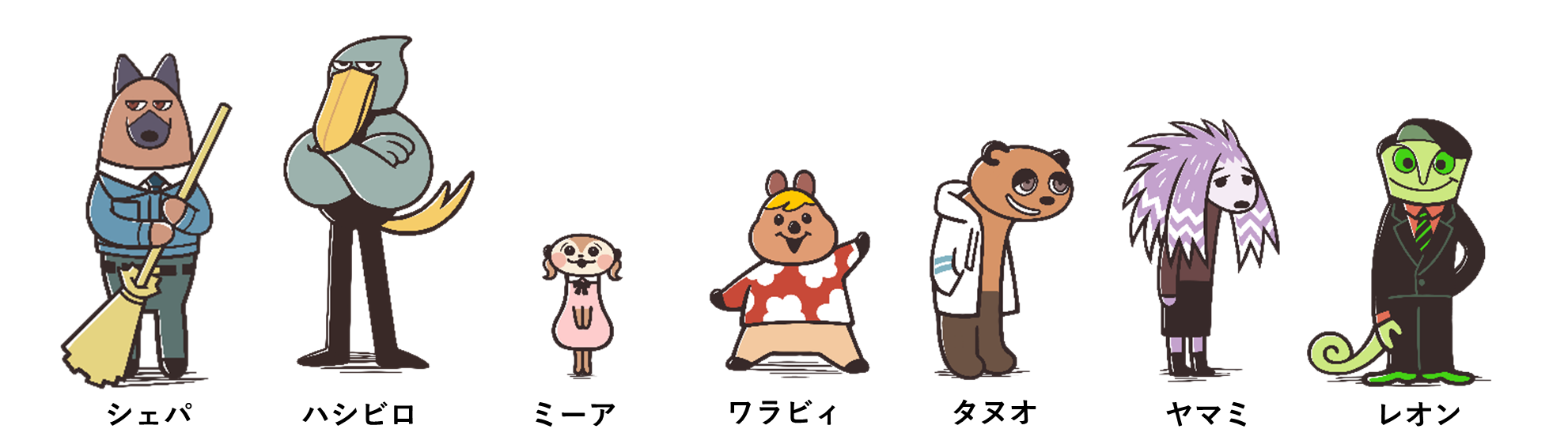 第一弾は、ミーアキャットの「ミーア」とハシビロコウの「ハシビロ」の2匹のストーリーを公開。今後は、考えるよりまず行動をするクアッカワラビーの「ワラビィ」や、どこか憎めないちゃっかり者のタヌキの「タヌオ」、控え目だけど、心の中はマイワールド全開のヤマアラシの「ヤマミ」のストーリーを公開予定です。